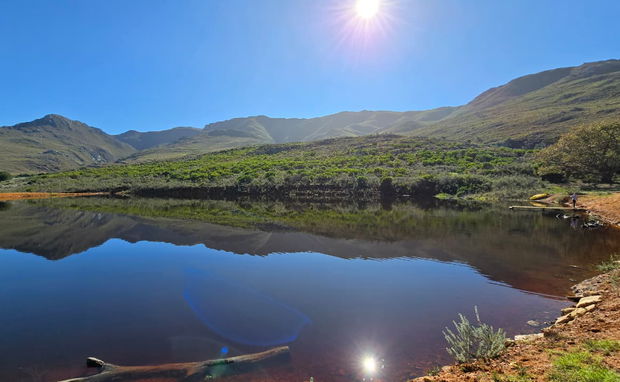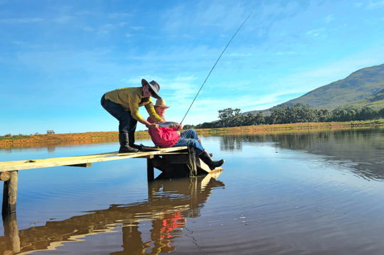 Set on a peaceful working farm in the Overberg, guests have access to a large stocked dam surrounded by mountains and open landscape — ideal for relaxed fishing or a dedicated angling getaway.