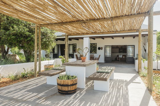 This Karoo-inspired cottage offers 2 bedrooms, 3 bathrooms and a beautifully designed open-plan lounge, living room and kitchen for easy, comfortable living. Step outside to a generous patio with an outdoor braai area and several outdoor dining spaces—ideal for long lunches, sunset views and relaxed gatherings.